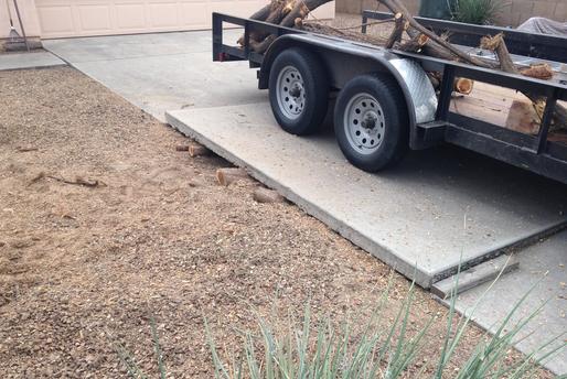Roots lifting a drive way slab. We Ground the Mesquite stump to the left and the stump was about 8 feet away from drive edge..